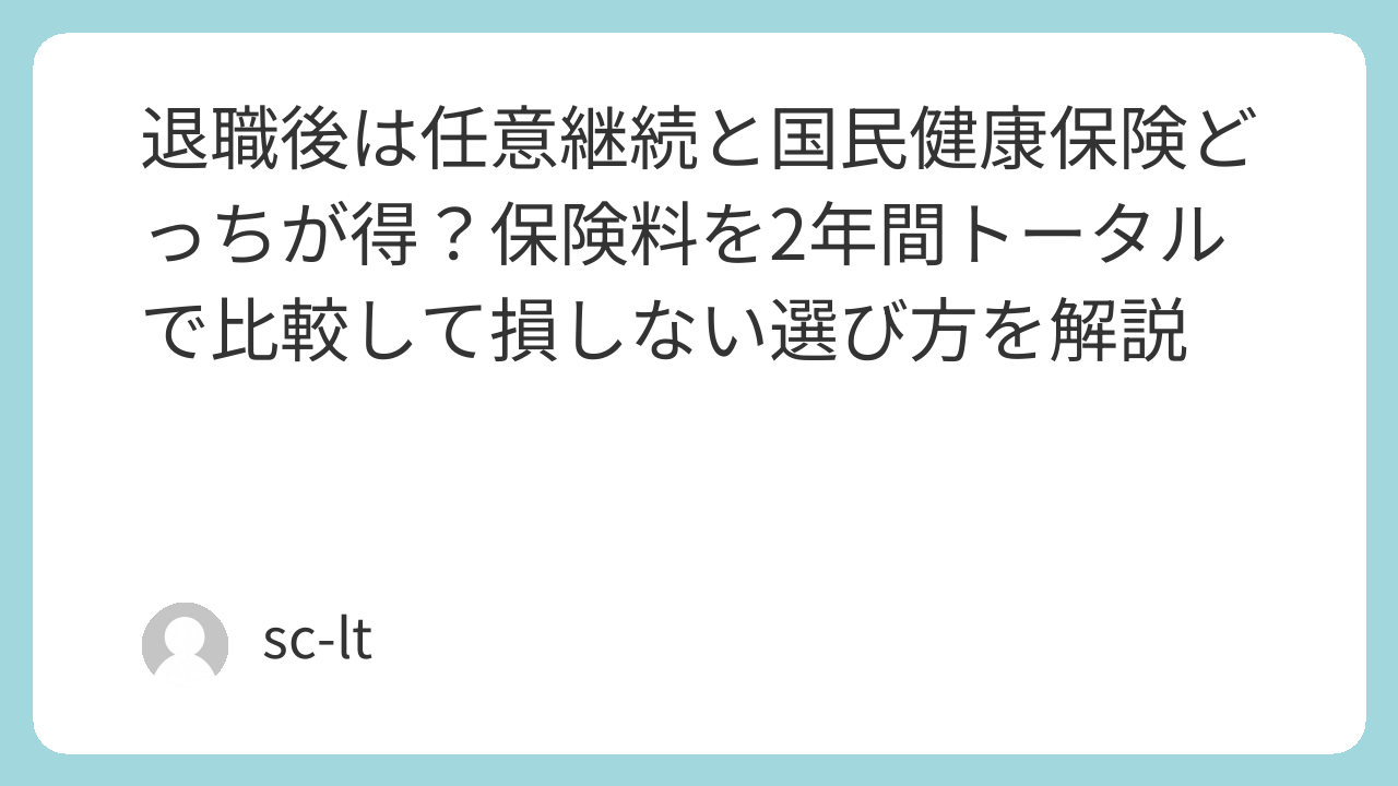 - 高収入・扶養家族ありの方 → 任意継続が有利なことが多い(2年間トータルで比較)